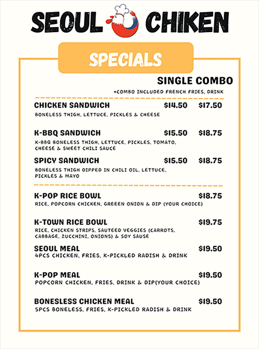 Here at Seoul Chicken In Langford - Victoria you'll experience delicious cuisine. Try our mouth-watering dishes, carefully prepared with fresh ingredients! At Seoul Chicken In Langford, our recipe for success is simple - Great food & care makes customers return every time.